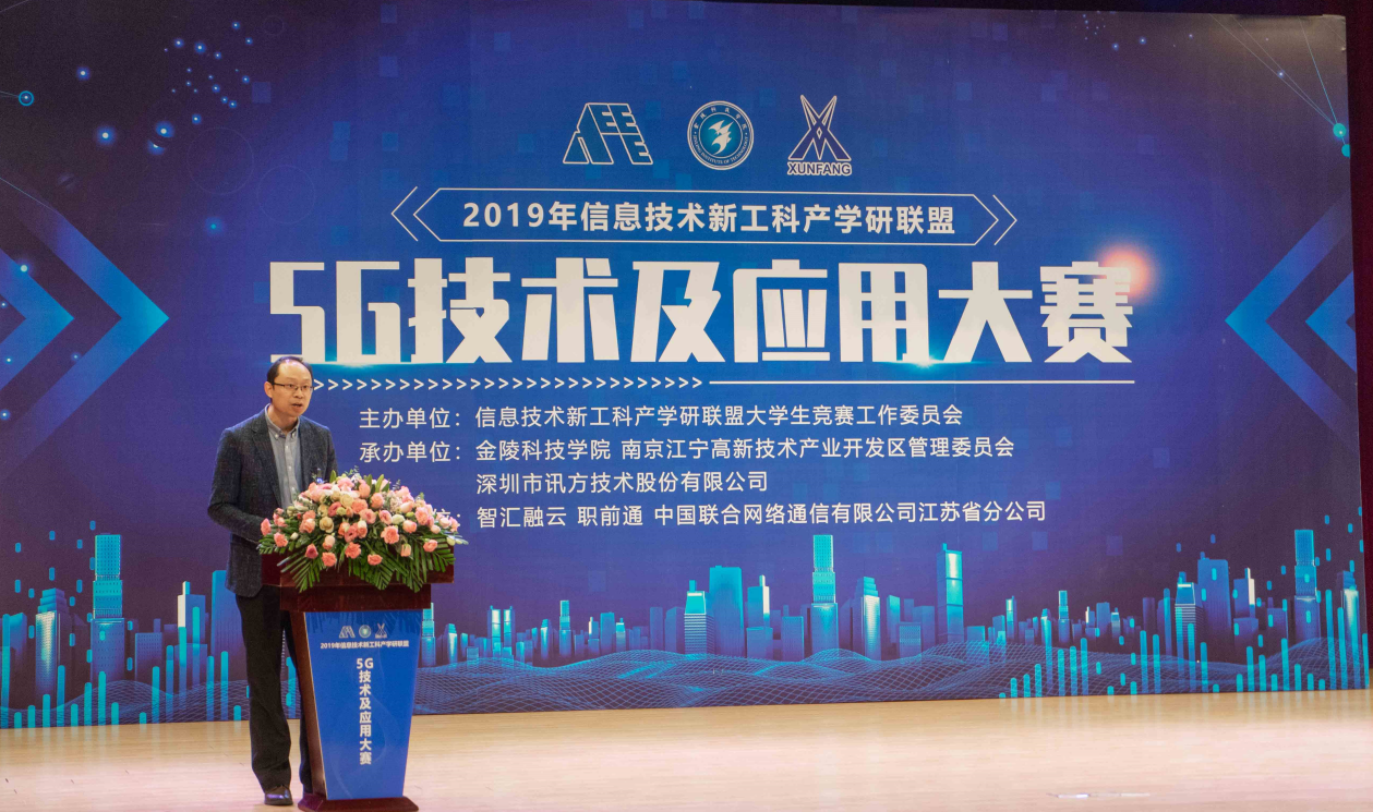开幕式上,金陵科技学院校长聂影教授代表承办单位第一时间致辞。他代表学校欢迎出席开幕式的嘉宾、专家学者及来自全国参赛学校的师生,他希望,能够以本次大赛为契机,以赛促建,全面深化其校工科专业的教学改革,优化人才培养模式,为地方培养更符合市场需求的高素质应用型人才。接着,江宁区人民政府副区长、江宁高新区党工委书记缪秀梅女士介绍了江宁区的产业开展和科技创新情况,她指出,“江宁区是南京市科技创新的活力板块,形成了以生物医药、绿色智能汽车、新一代信息技术为代表的“3+3+3+1”高端现代产业体系。” 缪区长向广大的创新创业者发出号召,希望大家能够共同用5G技术及应用带给群众更美好的生活,建设网络强国、数字中国、智慧社会。